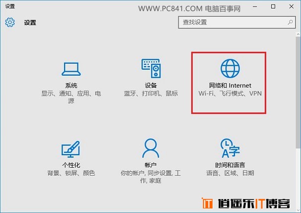 2、打开设置后,再点击进入“网络和Internet”设置,如图。