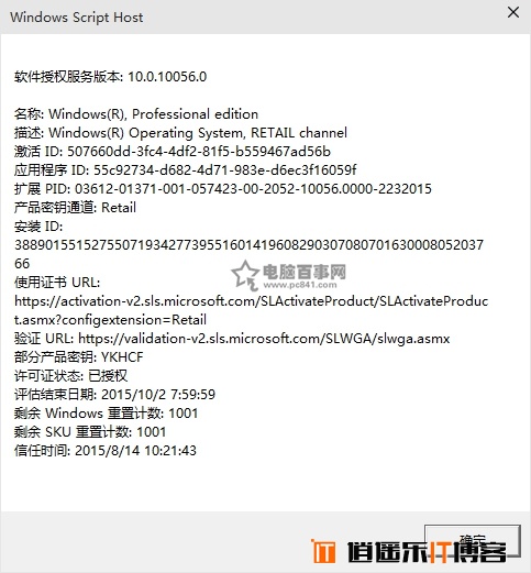 1、使用 Windows + R组合快捷键打开运行命令框运行: slmgr.vbs -dlv 命令可以查询到Win10的激活信息,包括:激活ID、安装ID、激活截止日期等信息。