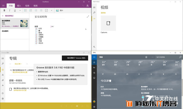 看到下面我们打开的这几个应用,全都属于应用商店下载的通用应用,但是在操作模式上和普通程序没有任何的区别,支持最大(小)化和关闭窗口。这样的结构你还会觉得不习惯吗?所以在Win10中取消了“媒体中心”,直接使用“电影和电视”应用就可以播放视频,用音乐应用播放音乐。