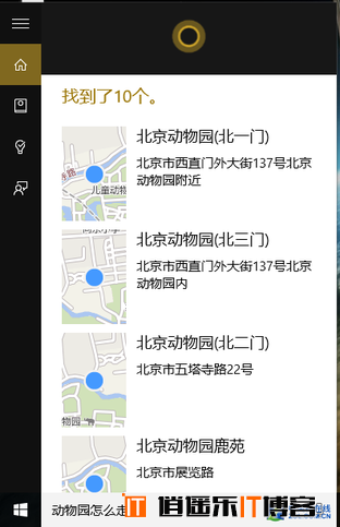 接着我们要说,Cortana不单单是一个搜索工具,同时它还是你的个人助手。比如我们输入“看看今天天气”、“到动物园怎么走”等等这些问题,Cortana可以直接给出答案,而不是再去搜索网页。在手机上用过Siri或者Cortana的用户应该都不会陌生这样的助手功能。