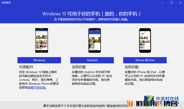 说到手机和平板,事实上在Win10的预装应用中本来就有一个名叫“手机助手”的应用,它可以自动识别匹配Windows手机、Android设备和iOS设备。用户可以像管理一个移动硬盘一样管理接入的手机。