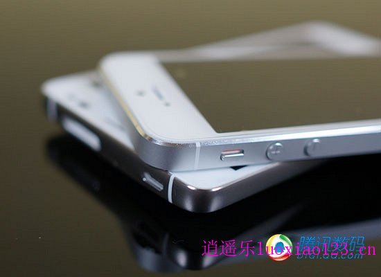 接下来是“众矢之的”的苹果iPhone5,可以看到,5英寸和4英寸的体积差异还是相当大的,不过经过细节对比,你会发现到一些很有趣的事情。笔者刚刚拿到华为Ascend D2时,就感觉到一些细节设计似曾相识,通过下面的对比图片,相信大家也能够感受到。首先是机身的磨砂金属边框,与苹果iPhone 5很相似,只是省去了切割工艺;其次,机身顶部及底部都拥有与iPhone 5很相似的白色塑料连接处,而底部扬声器的孔状更是如出一辙,只是麦克风没有使用同样的设计罢了。
