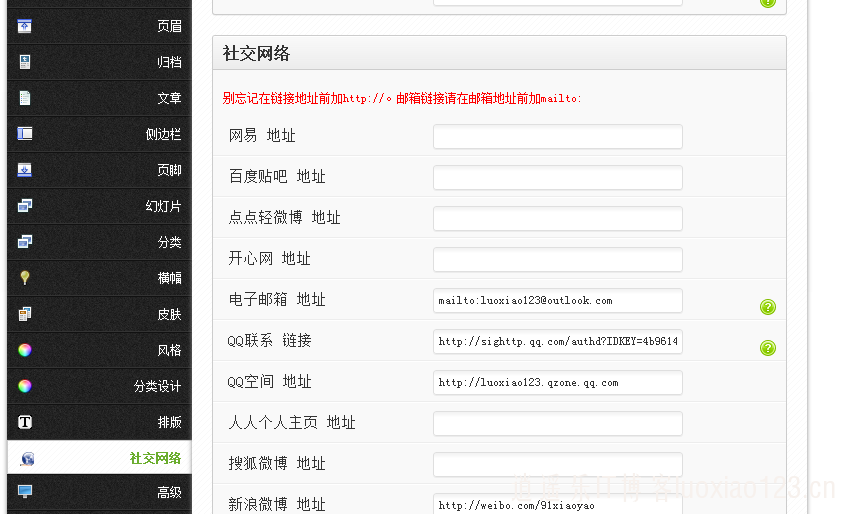 10:9月9日应大家的请求本次增加了小工具 社交媒体 国内主流网站的图标链接!设置链接请到sahifa主题设置菜单——社交媒体 中添加修改!您只需要在对应项加入链接即可!不加入不显示!