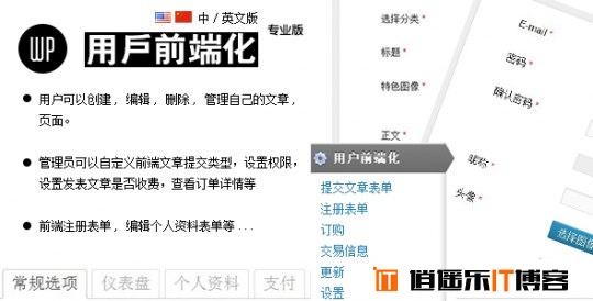 WP用户前端化专业版WordPress插件WP User Frontend Pro逍遥乐汉化版,前端用户中心,WP本身支持后台注册和投稿,但是为了美观和安全,很多做文档和资源分享的网站也许都希望用户在前端注册投稿,制作前端用户中心,本插件专门解决这个问题。