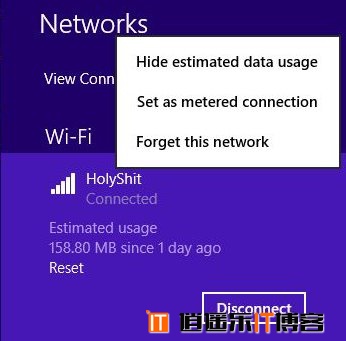 在升级到Windows 8.1之后,会发现在Windows 8中只需要单击右键就可以实现的查看已使用流量的功能不见了。在这次更新之后,这一功能再次回归!对于经常使用手机创建热点来应对紧急情况的我来说,这一功能还是very nice的!