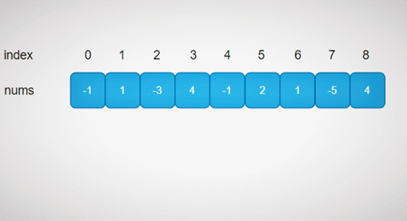 以数组nums[i]=[-2,1,-3,4,-1,2,1,-5,4]为例子,如下图示。