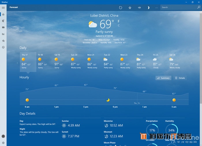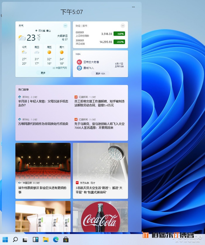 “小工具”是 Win11 里的一个全新组件,类似于现版中的“天气与资讯”。和“天气与资讯”一样,小工具也是基于网络数据,为用户提供天气、股票、体育、新闻等信息服务。不过与“天气与资讯”不同,Win11 里的小工具采用的是固定面板,点击后会遮挡住大半个桌面空间,且是使用率更高的左半部分,这样的结果显然有些令人费解。目前小工具还不支持面板大小及位置调整,或许后期会有调整吧!